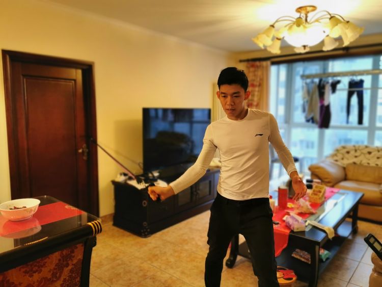 参加社区防护工作,跟女儿在家练球。——陈俊