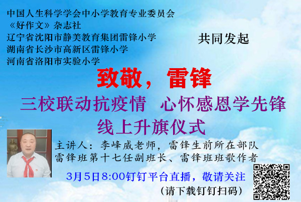 致敬,雷锋,——线上升旗仪式!中国人生科学学会中小学教育专业委员会、《好作文》杂志社等共同发起!...
