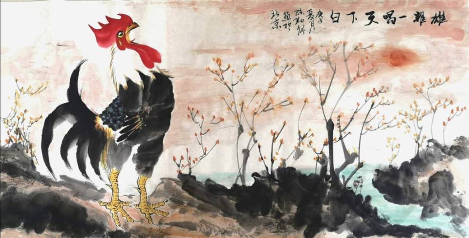 金鸡画家陈勤伍新作《雄鸡一唱天下白》